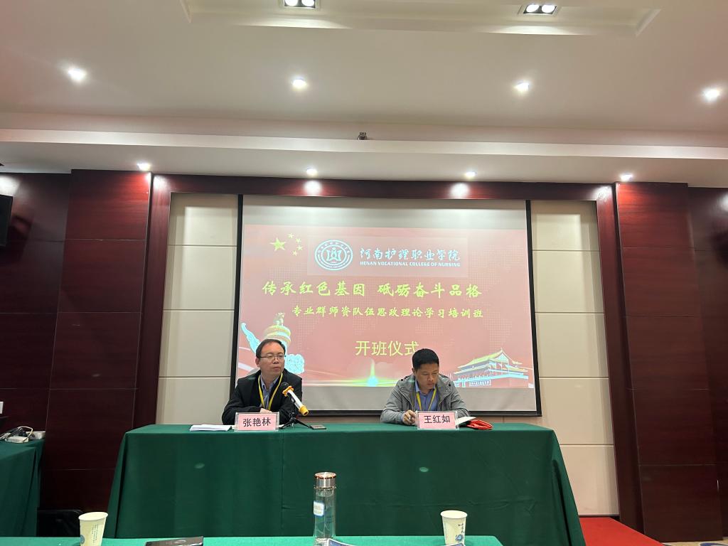 在开班仪式上,张艳林介绍了本次活动的背景、目的和意义,并对学习纪律和安全作了要求。教师代表刘东臣、闫红秀、崔淑芳就专业群师资队伍思想政治理论学习、学生德育教育和管理、学习贯彻党的二十大精神等作了发言。